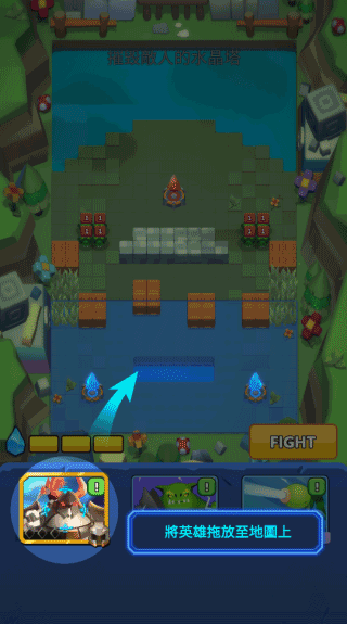 1、利用开局获得英雄进行放置,最终击破水晶获胜。