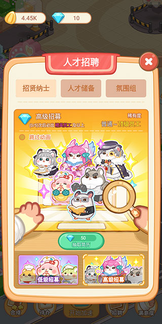1、进入萌宠欢乐消后,点击下方的招聘按钮