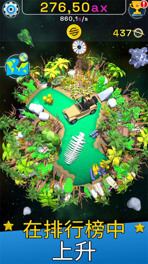 点击左侧的地图按钮,可以解锁更多新星球,并在这些星球上展开冒险。这就是星球进化模拟器汉化版的所有玩法。