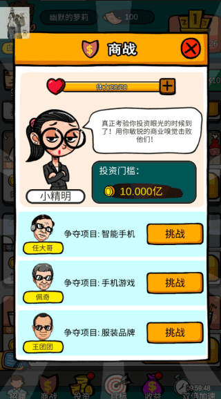 当你积累了一定的财富,为了在排行榜上获得更好的位置,你可以像其他老板一样参与商战。