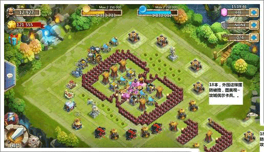 这个阵型外面建筑这样摆防被撸和美观,攻城的时候偶尔卡兵。