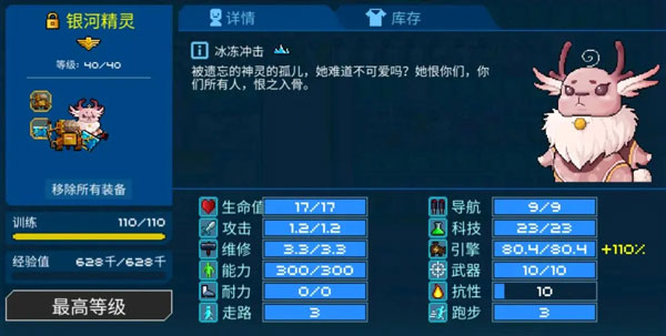 属性极度爆表,也是游戏里最强的冰冻科技人,训练度上限100,看属性你甚至看不出这货是4星
