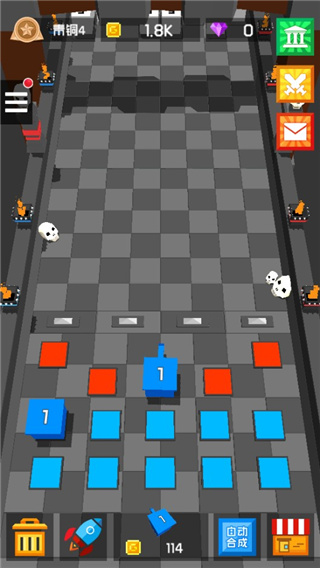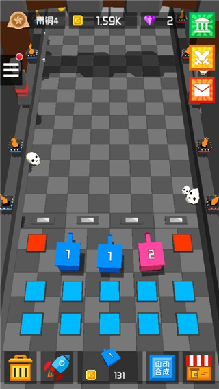 合成之后,低级别的方块机甲将升级为高级别。将机甲拖动至指定战斗区域,可以有效阻止敌人的入侵。
