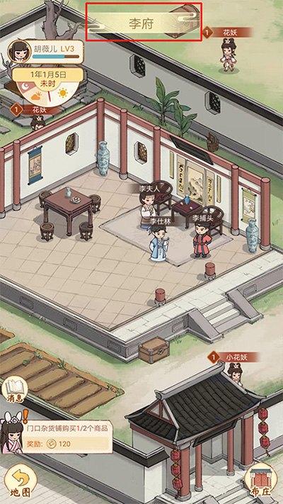 12、进入李府界面,可进行相关的任务和游戏探索,