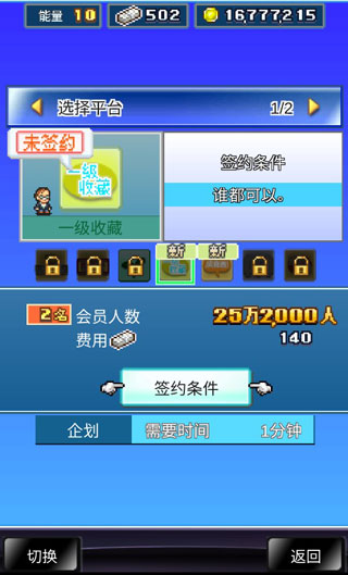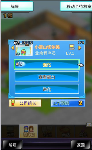 一开始玩家获得的都是1星的员工,开发几个游戏之后会获得2星的员工,员工星级越高,能力越强,不过工作成本也就越大。初期不建议大家去升星,可以合理的对2星或是3星员工进行升级,道具还是很足够的。