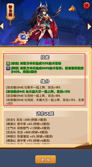 4、点开武将面板,可以查看该武将的技能和缘分。
