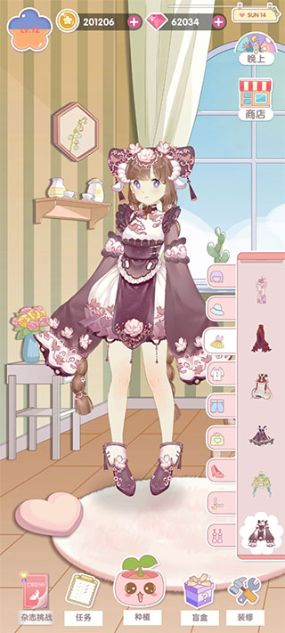 服装换色,变异,家具解锁,各种各样的个性化定制玩法,让玩家不再感觉有千篇一律的单调体验。开始老老实实种C级的就ok了,(B级也可以种,但A级可以先放放,时间大幅度加长)金币完全不用担心花不完,闯关给的很多,用不完,召唤用金币就好了,多种几次总会出来的。npc那里的衣服都买光,很便宜的(钻石买的也是,召唤一次10钻,在那买一件还不到10钻,超划得来)买光之后C级和B级基本就齐了,闯关给了一套古风的衣服好好看。