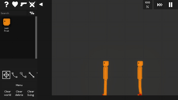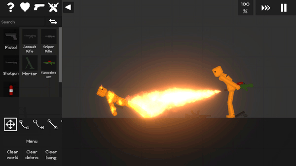 3、进入游戏如图,玩家可以自由添加物品、人物、武器等;