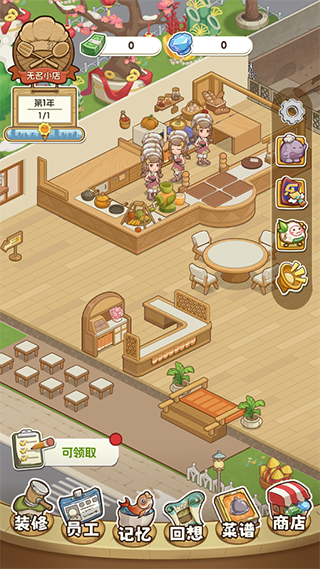 游戏提供了多种经营元素,包括环境装修、员工招聘与升级、菜谱合成与升级等