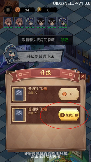 5、大家可以在游戏中也使用免广告功能,快速的提升门的等级,留着金币购买其他的道具;