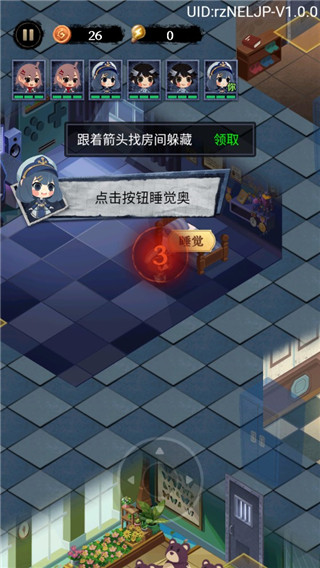 3、我们首先找个房间躲起来,关好门;