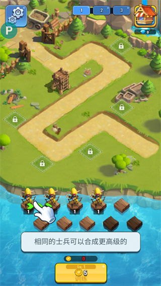 全新的升级模式摒弃了乏味的城市建设和征兵按钮。取而代之的是,士兵完全由您掌控!您可以随意将两个相同等级和类型的士兵合并成更高级别的士兵!