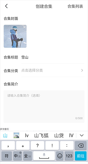 然后在打开的新页面中将相关参数填写完整创建一个合集