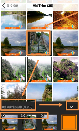 6、依次点选需要的图片,然后点按对号标志,如果有多选或者选错的可以点按已经选中图片旁边的小叉子,如下图所示。