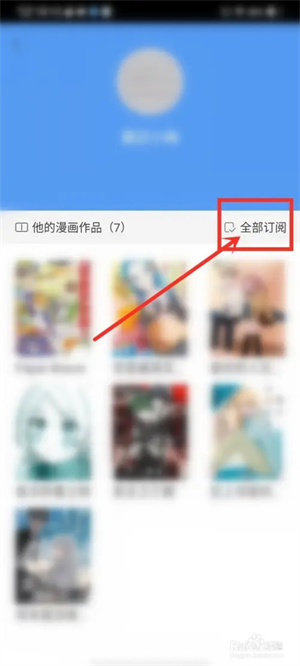 在作者主页,点击“全部订阅”图标,即可订阅作者全部漫画作品。