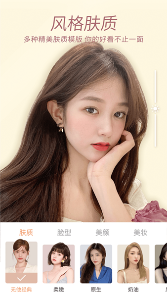 提供了精细的美颜功能,包括磨皮、瘦脸、大眼和红润等,并且拥有多种美妆选择。此外,还内置了大量的AR贴纸,用户可以一键体验各种风格的服装搭配,享受换装的乐趣,进而激发更多的拍摄创意。