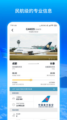 2、专业即时的飞机信息、民航级专业信息、精准机场信息牌指示,飞机路线查看。
