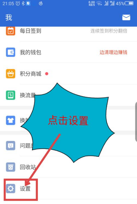 打开我界面,滑动手机屏幕,在下面有个设置选项,点击设置。