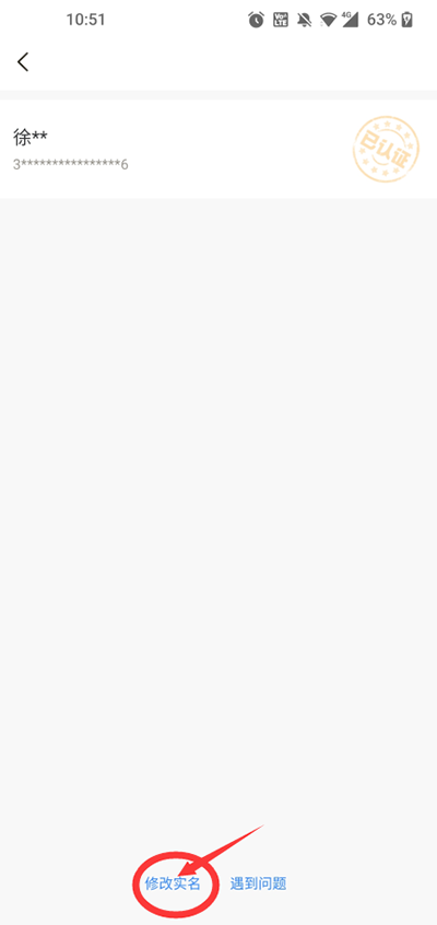 3、然后便会出现你的实名认证情况,点击下方的“修改实名”。