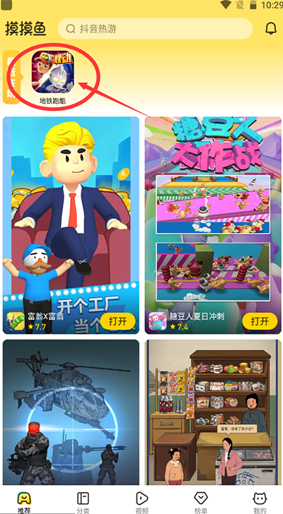 1、首先首次下载安装好摸摸鱼最新版本,然后进入到主页面选择自己想要游玩的游戏。