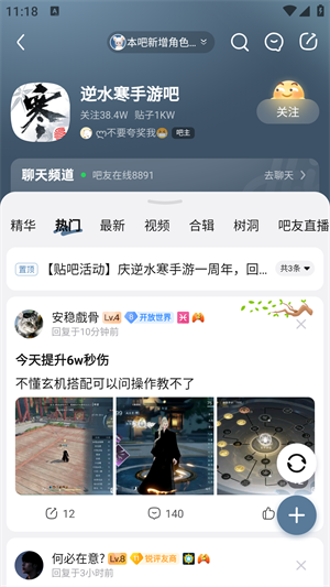 3、点击自己喜欢的贴吧就可以与其他的用户进行互动交流。