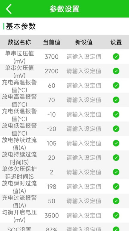 根据不同的应用场景,用户可以对电池类型、串数以及电压、电流的各项报警值进行修改,确保电池在不同环境下都能安全、稳定地运行。
