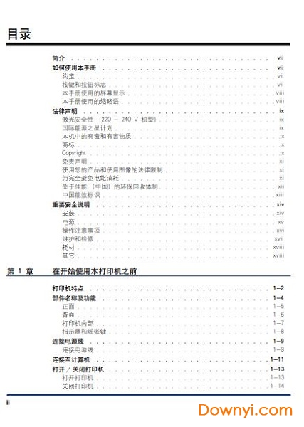 第1章在开始使用本打印机之前,详细介绍了设备的安装步骤和初始设置,确保用户能够正确连接电源并完成驱动程序安装。第2章装入和传输纸张,指导用户如何正确放置纸张,避免卡纸现象。第3章设置打印环境,帮助用户根据实际需求调整打印参数,如纸张类型和打印质量。第4章打印文档,详细说明了从选择文档到完成打印的完整流程。第5章日常维护,提供了清洁和保养打印机的实用建议,延长设备使用寿命。第6章故障排除,列举了常见问题及其解决方法,帮助用户快速恢复设备正常运行。第7章附录,包含了打印机的技术规格和兼容性信息,为用户提供全面的参考。