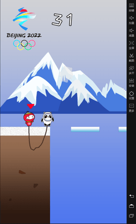 简洁的游戏画面,通过控制两个角色进行闯关,两个角色十分可爱,快速的去进行冒险。游戏的操作非常简单,玩家可以轻松地控制冰墩墩和雪容融完成各种挑战。游戏的设计更加新颖,加入了全新的吉祥物元素,更加符合用户的审美,让玩家在闯关过程中感受到更多的乐趣。此外,游戏还提供了多种关卡和挑战模式,玩家可以根据自己的喜好选择不同的玩法,体验不同的游戏乐趣。