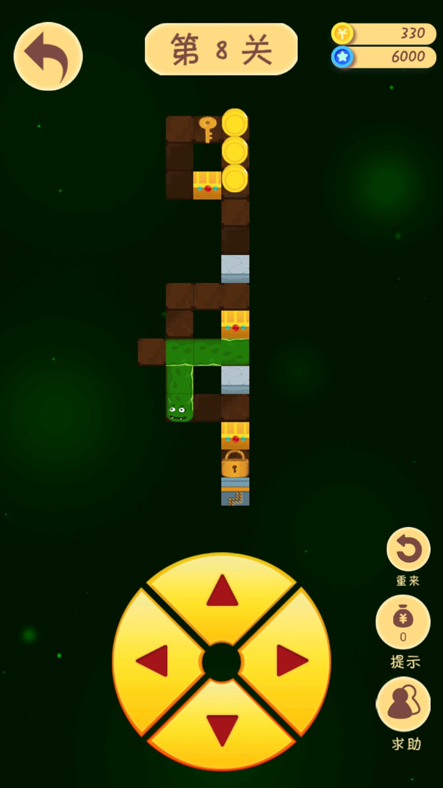 3.控制游戏当中的贪吃蛇,不断的去吃掉一些物品来进行闯关,体验成长的乐趣。
