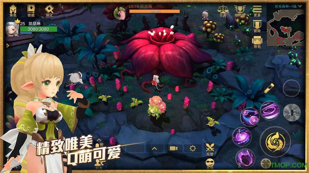 《塞尔之光》由韩国顶级美术团队监修,采用了市面少见的glow镂空效果技术和基于SpringMass的真实感细节模拟。游戏中的所有场景和角色都采用了高精贴图和高达40万面的模型,无论是大场景还是小细节,都经过了精心的打磨。清新可爱的画风不仅让人眼前一亮,更为玩家带来了视觉上的绝佳享受,仿佛置身于一个梦幻般的世界。