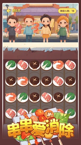 1、体验穿串过程这款游戏里面运用了三消的闯关模式来设计去进行展现的,让玩家可以去体验穿串的过程。玩家在游戏中不仅能感受到消除的乐趣,还能通过穿串的过程体验到制作美食的成就感。每一关的串串食材都经过精心设计,让玩家在消除的同时,仿佛置身于一个热闹的串串摊前。