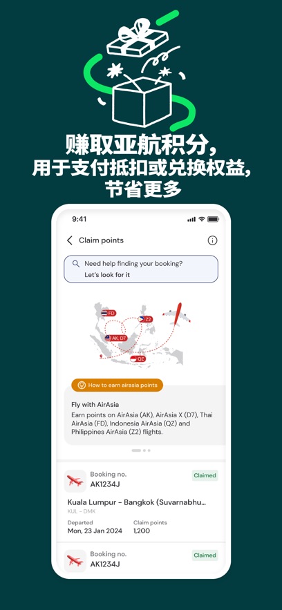 每一笔交易都能赚取亚航积分,足够的总积分即可兑换额外的产品和服务等。通过airasiamoveapp预订机票、酒店或其他服务,您可以累积积分,兑换各种奖励和优惠,让您的旅行更加超值。