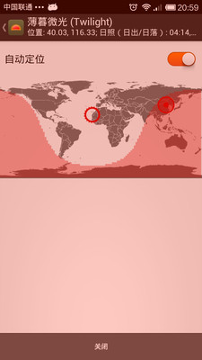 实验数据显示,睡前长时间使用平板电脑或智能手机阅读的人群,可能会出现约一小时的睡眠延迟。薄暮微光(Twilight)通过调整设备屏幕的光线,帮助用户减少蓝光对眼睛的刺激,从而改善睡眠质量。它会在日落后自动过滤掉屏幕上的蓝光,并以柔和的红色滤镜保护您的眼睛。滤镜的强度会根据您所在地的日出和日落时间自动调节,确保全天候的舒适体验。