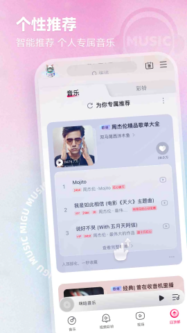 顶级音质:拥有丰富的音乐曲库,提供24bit高品质3D立体声环绕音效,为用户带来极致的听觉享受。