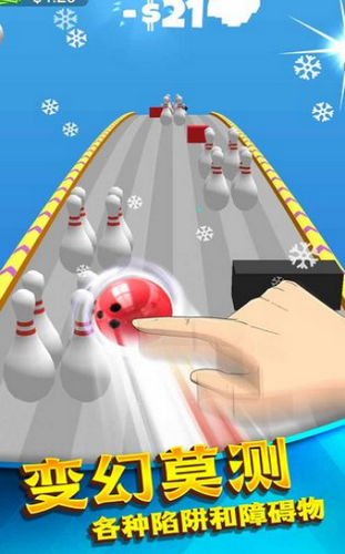 1、3D画面,呈现逼真的物理效果,表现更为出色,让玩家仿佛置身于真实的保龄球赛场。