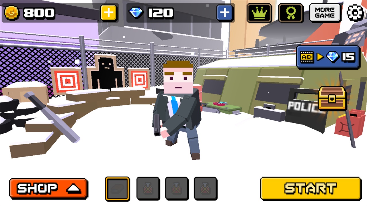1、在这个游戏中,你将扮演一名幸存者,与丧尸作战。战斗的过程非常惊险刺激,每一次战斗都充满了未知和挑战。2、在这个游戏中,你可以随意切换各种武器装备,使用各种枪械、地雷、手榴弹来对付各种丧尸,多样化的武器选择让战斗更加丰富多彩。3、独特的像素画面和3D逼真的音效带给玩家非常独特的体验感,无论是视觉还是听觉,游戏都能为你带来极致的沉浸感。4、游戏难度可自行调整,玩家可以选择不同的难度来挑战自己,无论是新手还是老玩家,都能找到适合自己的挑战方式。