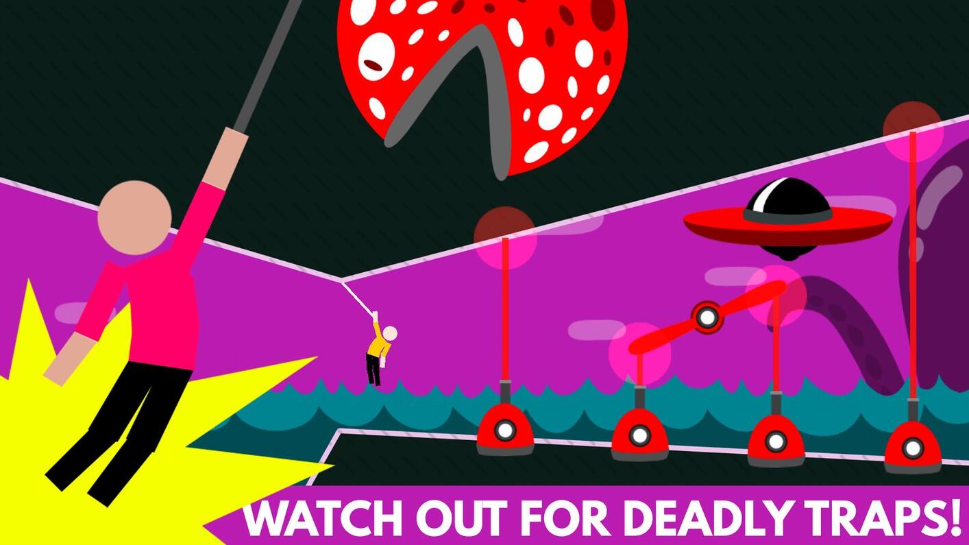 在《悬吊人世界》中,玩家将扮演一个火柴人,通过绳索摆荡的方式穿越各种危险的关卡。游戏融合了Happy Wheels的刺激感和蜘蛛侠的摆荡动作,带给玩家双重乐趣。玩家不仅需要灵活操控角色,还要小心避开各种致命障碍,如锋利的锐刺、电锯、激光和饥饿的怪兽等。此外,游戏还提供了强大的关卡编辑器,玩家可以自由设计关卡,并与全球玩家分享。每天都有新的玩家自制关卡加入,确保游戏内容始终新鲜有趣。