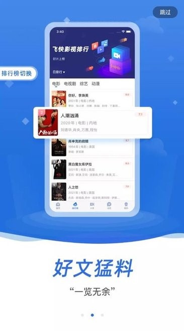 1、院线电影,热播电视剧,综艺,美剧,韩剧,动漫,有你想看,飞快影视为你提供高品质电影影视,高清,流畅的专业视频体验;此外,软件还支持多种分辨率选择,用户可以根据网络状况自由调整,确保在不同环境下都能获得最佳的观影效果。
