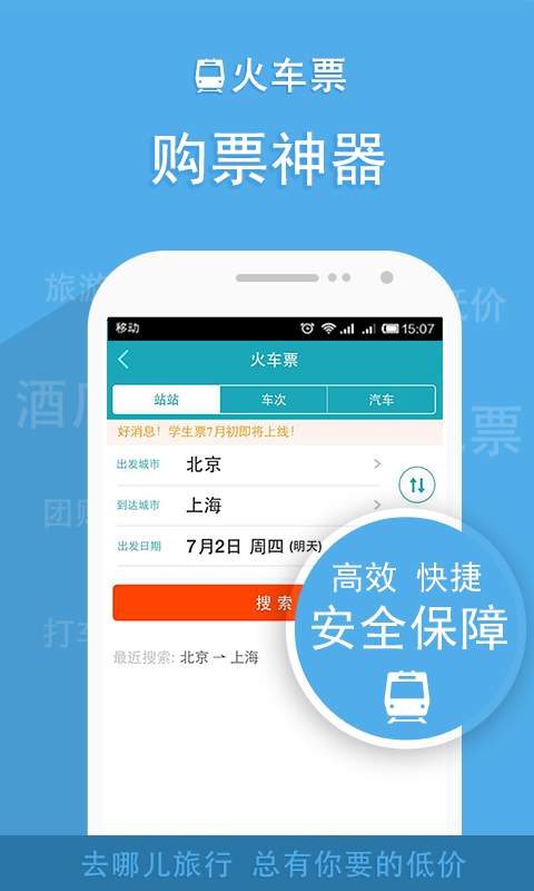 【火车票】:无手续费无等待随时购买火车票,高效便捷保障您顺利购票快速出行,让您的铁路旅行更加顺畅。