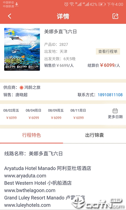66同业将自身功能清晰地集成在工具软件中,帮助同业销售随时随地方便地查询线路。用户可以在不改变原有销售流程和逻辑的情况下,轻松联络供应商,获取最新的旅游产品信息。此外,软件还提供了多种实用功能,如线路推荐、价格比较等,帮助用户做出更明智的决策。