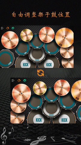 2. 自由调整架子鼓位置,新增了更多自定义选项,用户可以根据个人习惯自由调整鼓组布局。