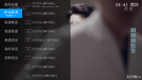 派tv电视盒子免费版提供了十几个频道分类,包含2000多个节目,涵盖港澳频道、海外频道、日韩频道等丰富内容。其中,港澳测试频道需要输入密码,默认密码为9527或1677。所有影视资源均支持按地区、年份、语种、类型进行筛选,方便用户快速定位感兴趣的内容。软件内置海量电视频道,部分频道需要密码解锁,用户可以在特别说明中查看详细信息。虽然开屏会有一些小广告,但整体使用体验依然流畅,资源丰富且完全免费。