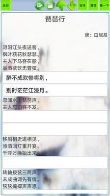 4.填空模式下用选字填空的方式帮助记忆古诗,每次自动生成不同诗句的填空内容。这种互动式的学习方式,能够激发学生的学习兴趣,增强记忆效果。