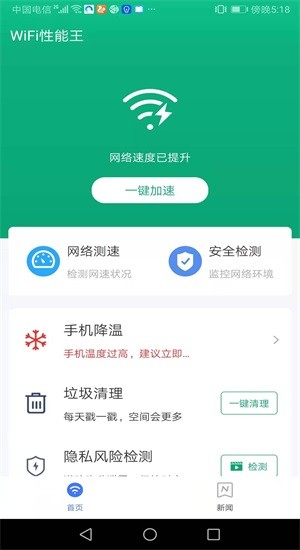 3.特别给用户推出了超强省电功能,可以提高手机的续航能力,可以一键优化网络,能够快速的提升网络速度。通过智能优化,WiFi性能王能够显著降低手机的电量消耗,延长电池使用时间,同时提升网络速度。