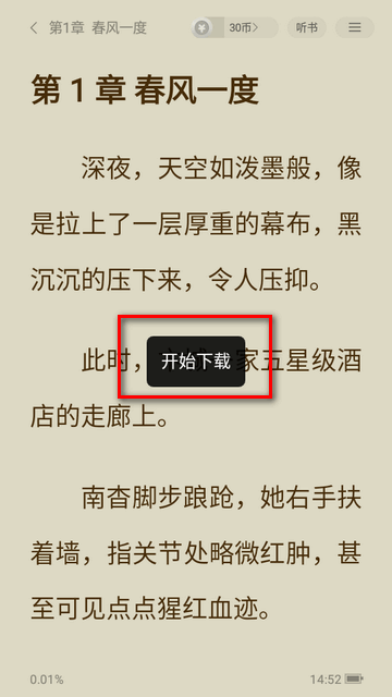 1、首先选择你想要缓存的小说,点击打开小说详情页面。