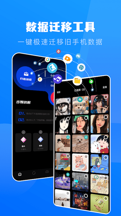快用数据传输app专为用户提供极速的数据迁移服务,帮助用户轻松将旧手机中的联系人、照片、视频等重要数据快速迁移到新手机。无论是换机还是备份数据,快用都能为你提供便捷的解决方案。其智能化的传输技术确保了数据的安全性和完整性,让用户无需担心数据丢失或损坏。此外,快用还支持多种文件格式的传输,满足用户在不同场景下的需求。无论你是普通用户还是专业人士,快用都能为你提供高效、可靠的数据传输体验。
