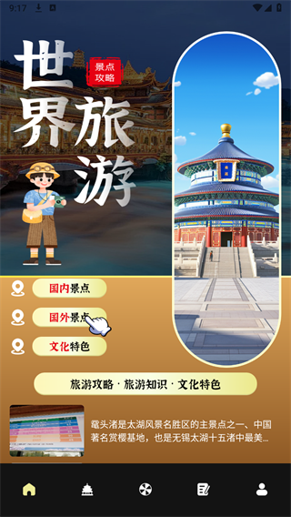 啊米游app带你游世界,国内景点,旅游攻略,旅游知识,当地的文化特色,多个省份都有不同景点推荐。用户可以先通过简介再决定向哪里出发,还有小决定,犹豫不决,就用小决定,旅游添加,出行过的每个地方,增加自身见识,读万卷书,行万里路。无论是初次旅行还是资深驴友,啊米游app都能满足你的需求。软件不仅提供了丰富的景点介绍,还根据用户的兴趣和偏好,智能推荐适合的旅行路线和活动。用户可以通过软件了解各地的风土人情,提前做好行程规划,确保旅途顺利。此外,软件还支持离线下载功能,即使在网络不佳的地区,用户也能随时查看旅游信息,真正做到随时随地畅游世界。