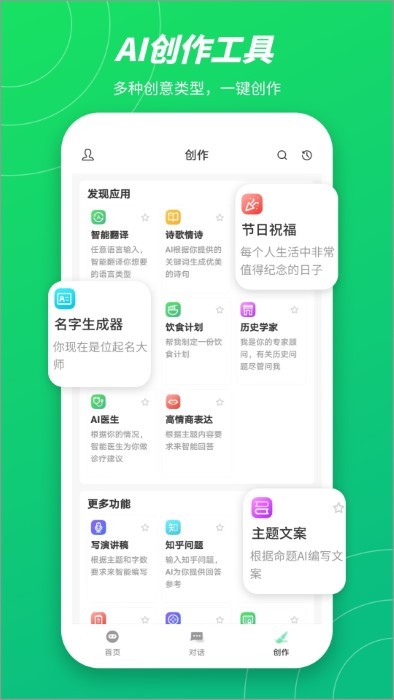 无问ai支持多种创意类型,用户只需一键操作即可完成创作。无论是文字、图片还是其他形式的创作,这款应用都能为你提供便捷的解决方案,让你的创意快速实现。