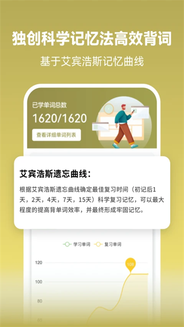 记忆曲线背单词功能利用艾宾浩斯记忆遗忘曲线科学计划,帮助用户合理复习,轻松牢记单词。通过科学的复习安排,用户可以更有效地记忆和巩固所学单词。