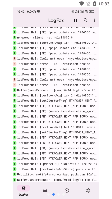 logfoxapp具备强大的日志管理功能,能够按照时间顺序对应用程序的日志消息、调试信息以及其他系统事件进行排序和显示。其直观的用户界面为用户提供了一个清晰的视图,方便开发者实时跟踪应用程序的各种行为。通过logfox,开发者可以轻松发现并解决潜在问题,确保应用程序的稳定运行。此外,logfox还支持多种日志格式的导入和导出,方便开发者进行跨平台的数据分析。无论是日常开发还是紧急调试,logfox都能为开发者提供强有力的支持,成为其不可或缺的助手。